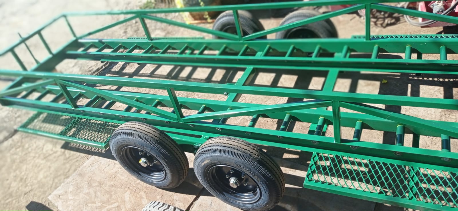 Carro Porta Vins Carro porta vins para 4 vins, con polines de acero con buje de tecnil sobre ejes de acero con buje de tecnil sobre eje de 19mm, carro lleva sistema de buggie con 4 ruedas agrícolas aro 14 de 8 telas Galería